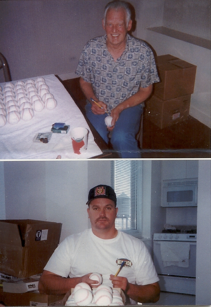 The piece also came with a hobby store certificate of authenticity, saying this is the 61st of 1956 balls in the series. This certificate came along with the photos above of the 2 pitchers signing the balls, to ensure even further that the autographs are real. It appears to have been at least 10 years ago, or who knows, maybe it was even before Cone threw his famous perfecto on July 18th, 1999.
